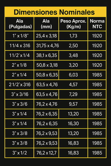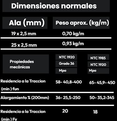 Fabricado bajo las normas: NTC 1920 - A36 - SAE 1015 NTC 1985 - ASTMA 572 G50 - SAE 1020